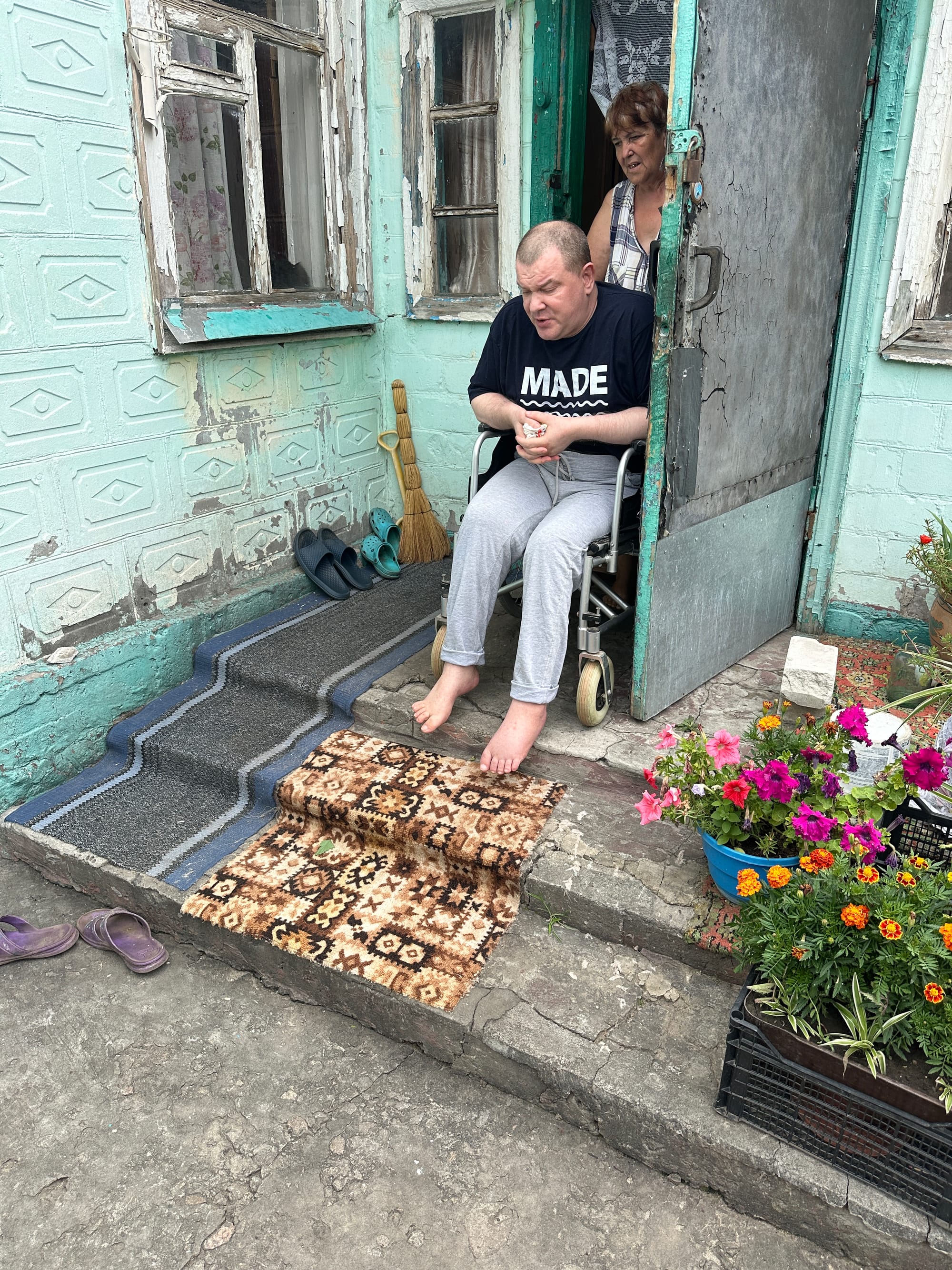 Мені так хотілося зробити йому якесь добро. Не просто підтримати, а якось вплинути. Я давно обіцяв йому вивезти його в місто. Приїхав я сюрпризом, зовсім не попереджаючи. Вони зраділи — Сергій та його батьки. Я приїхав не з порожніми руками: продукти харчування, памперси, серветки, трость, ліки — багато всього. Але найголовніше — я приїхав налаштований забрати Сергія із собою і провести з ним цілий день.