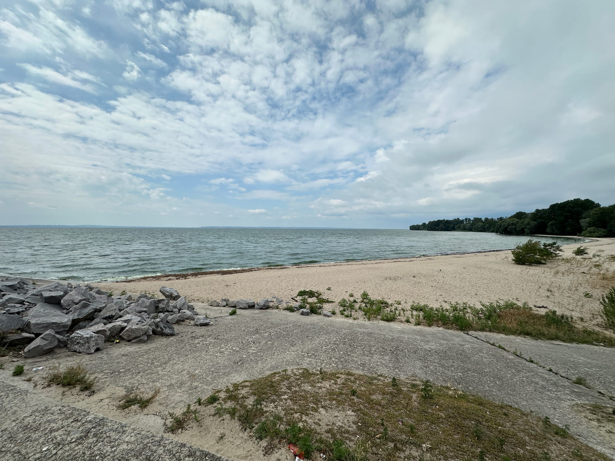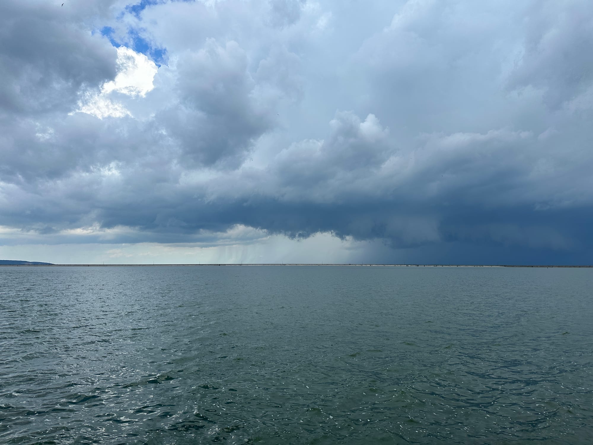 Потім ми поїхали на «дамбу» — дорогу протяжністю 10–15 кілометрів уздовж берегу величезного водосховища. Виїжджаючи з міста, ми переїжджаємо Дніпро над шлюзами та турбінами ГЕС, далі — довга красива дорога. Праворуч — дерева, внизу — дачі, а ліворуч — немов океан: Кременчуцьке водосховище, яке простягається до Києва і ще далі.