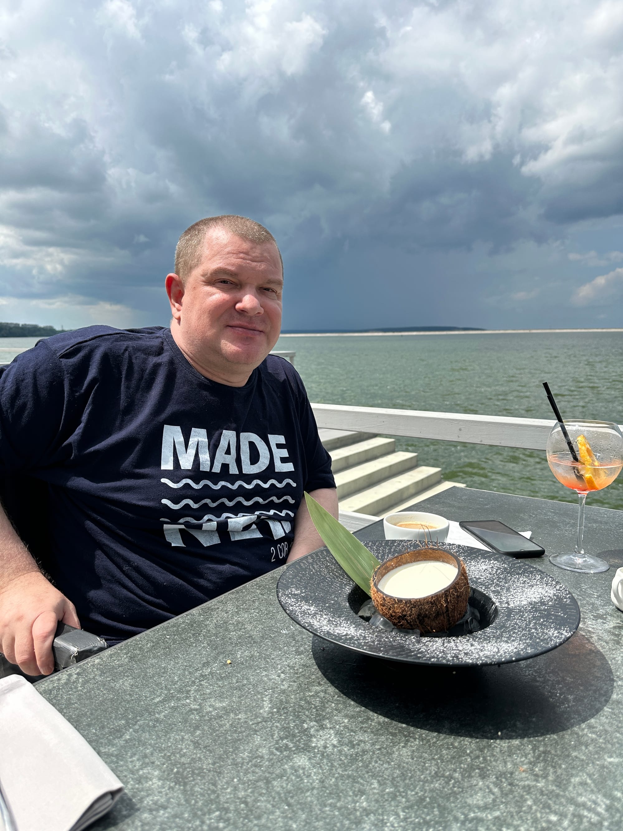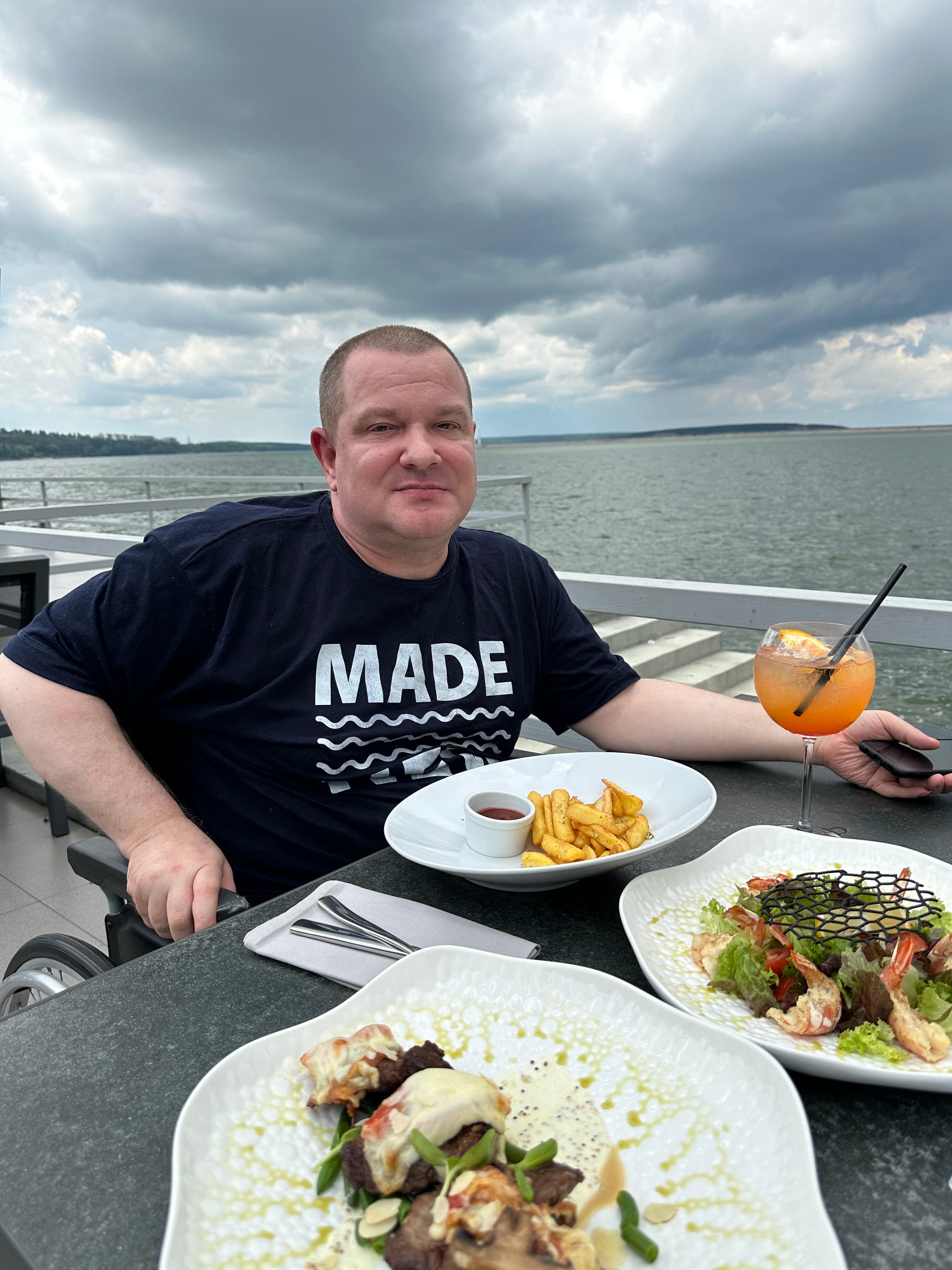 Я вирішив закінчити нашу зустріч урочисто — ми поїхали в ресторан. У минулому це будівля річкового вокзалу, яку переробили в сучасний гарний ресторан прямо на березі водосховища. Сергій не витримав і спитав мене, чи не соромно мені бути з ним. Але я вже давно нічого не соромлюся. Тим більше — людей з інвалідністю.